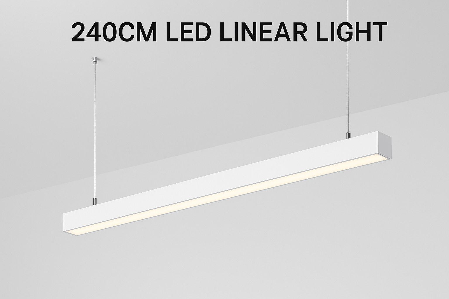 lluminate large spaces with the sleek and energy-efficient 240CM LED Linear Light. Designed for modern commercial and residential spaces, this high-performance fixture offers uniform, glare-free lighting while consuming minimal energy. Its versatile design allows for surface mounting or suspension, making it ideal for offices, retail areas, warehouses, and living spaces.