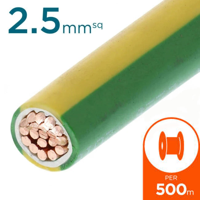 2.5mm Building Wire Cable Green & Yellow 500 Metre Drum