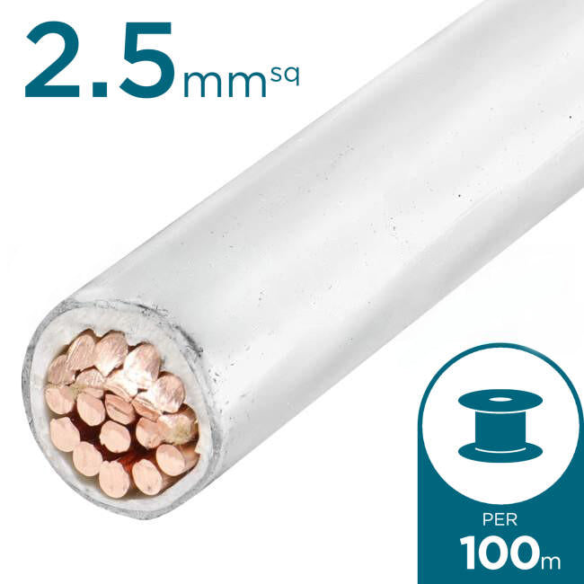 2.5mm Building Wire Cable White 100 Metre Drum