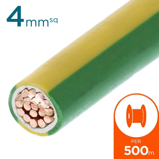 4mm Building Wire Cable Green & Yellow 500 Metre Drum