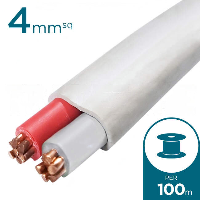 4mm Twin Active Flat Cable Red & White 100 Metre Drum