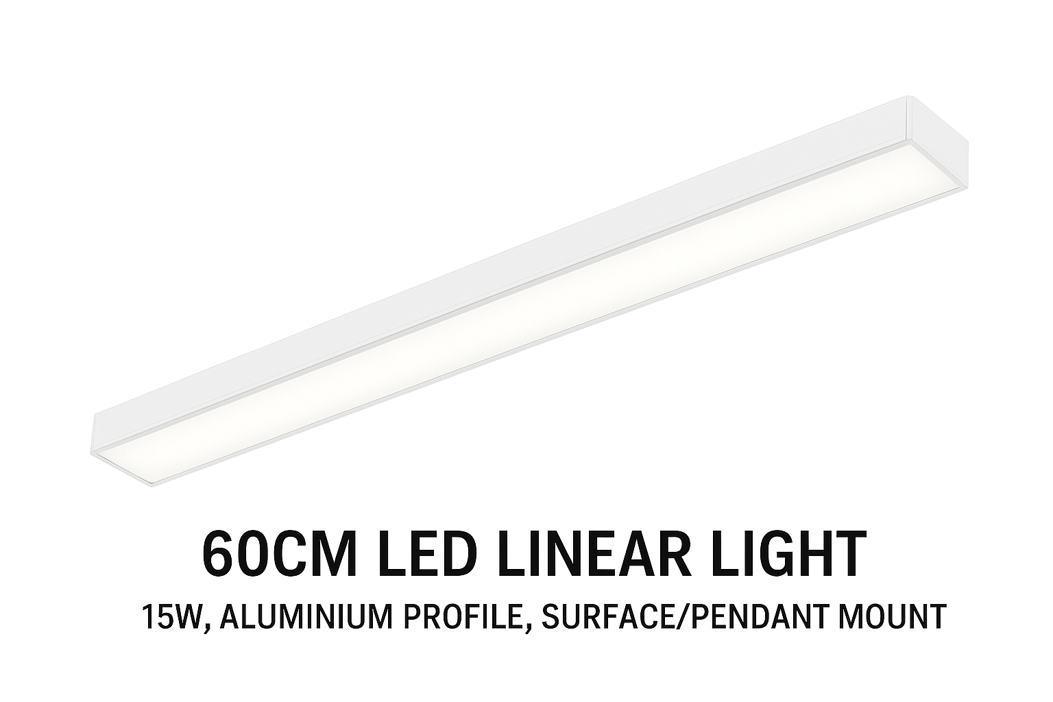 60CM LED Linear Light – 15W, Aluminium Profile, Surface/Pendant Mount