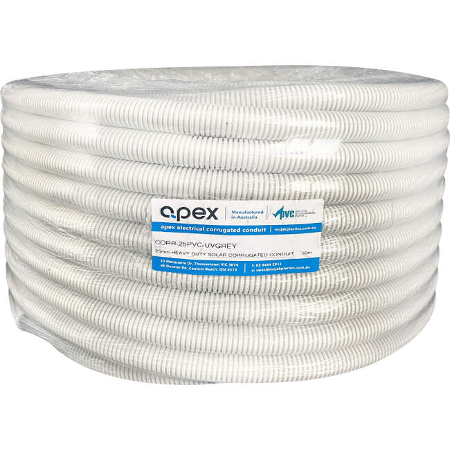 Apex 25mm Corrugated Conduit Heavy Duty UV Grey 50 Metre - Green Star Certified