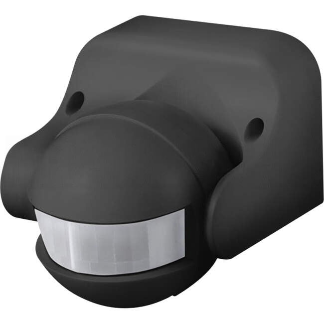 Atom 180 Degree Wall Mounted PIR Movement Sensor IP44 With 12 Metre Detection Range Black