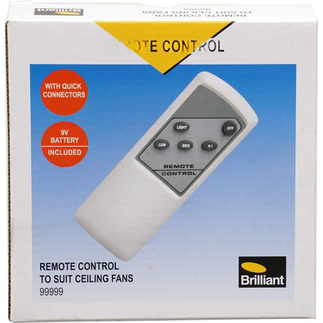 Universal radio frequency ceiling fan remote control with Brilliants unique quick connect plug-in design. Quick connect denys our remotes to be installed seemlessly in minutes with any Brilliant fan without any wire trimming or joining.Compatible with most other brands of ceiling fans.