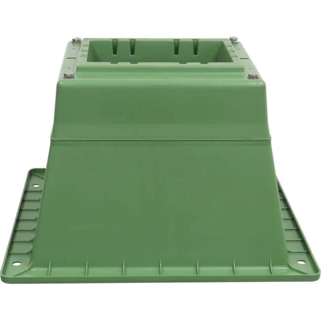 The CABAC Pillar Box Base is an all-purpose moulded plastic base to suit direct burial or slab mounting. The base can be directly buried, or bolted to a slab. For high stability on steep slopes or unstable soils the base can be attached to a steel framework and stabilised soil/concrete poured around the base.