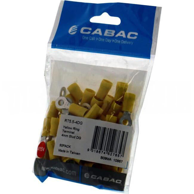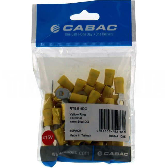 Cabac Stud Ring Terminal Double Grip Suitable For 4mm Cable Yellow Packet of 50