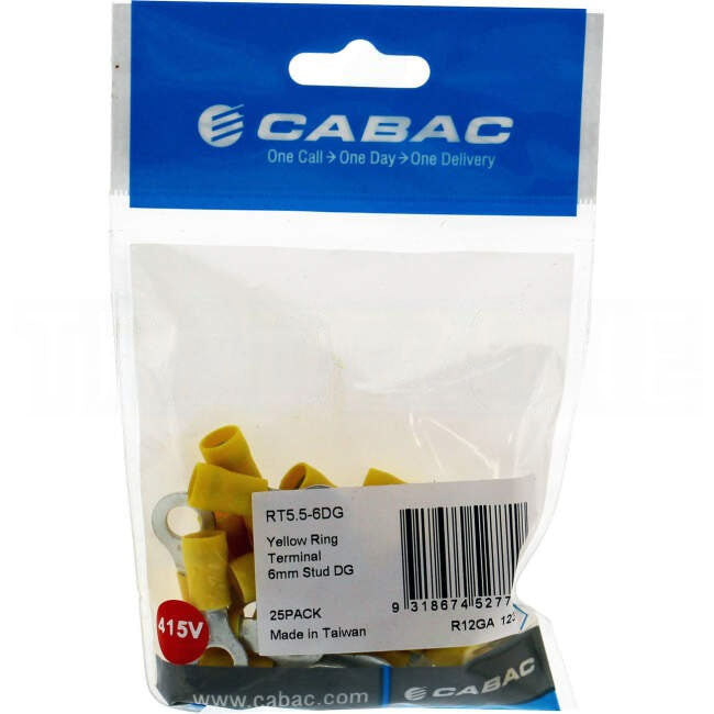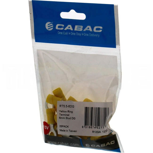 Cabac Stud Ring Terminal Suitable For 6mm Cable Double Grip Yellow Pack Of 25