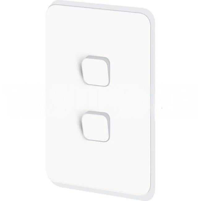 Clipsal 10 Amp 2 Gang ICONIC Vertical Internal Rocker Switch Vivid White