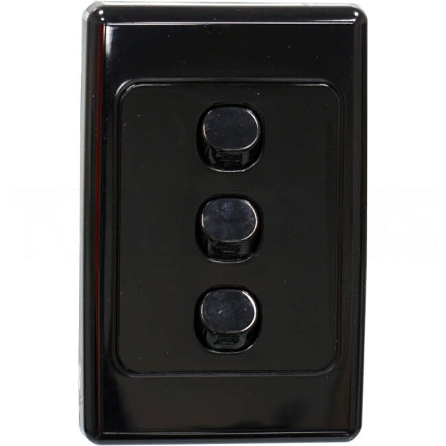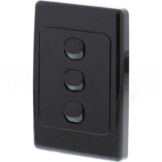 Clipsal 10 Amp 3 Gang 2000 SERIES Vertical Internal Rocker Switch Black