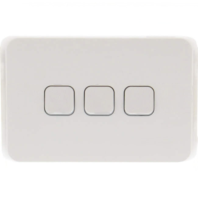 Clipsal 10 Amp 3 Gang ICONIC Horizontal Internal Rocker Switch Vivid White