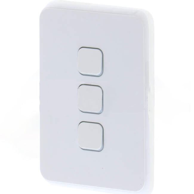 Clipsal 10 Amp 3 Gang ICONIC Vertical Internal Waterproof Rocker Switch IP44 White