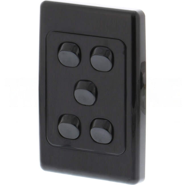 Clipsal 10 Amp 5 Gang 2000 SERIES Vertical Internal Rocker Switch Black