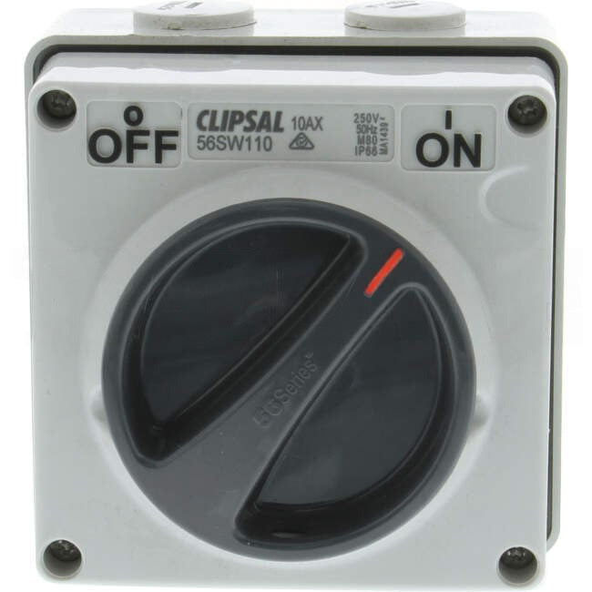 Clipsal 10 Amp 56 SERIES 1 Pole IP66 Industrial Isolator Grey