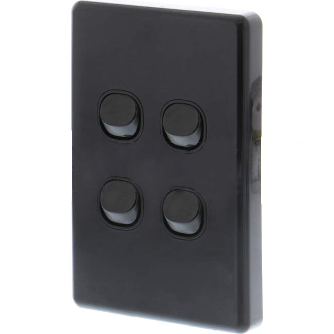 Clipsal 10 Amp CLASSIC C2000 4 Gang Vertical Internal Rocker Switch Black