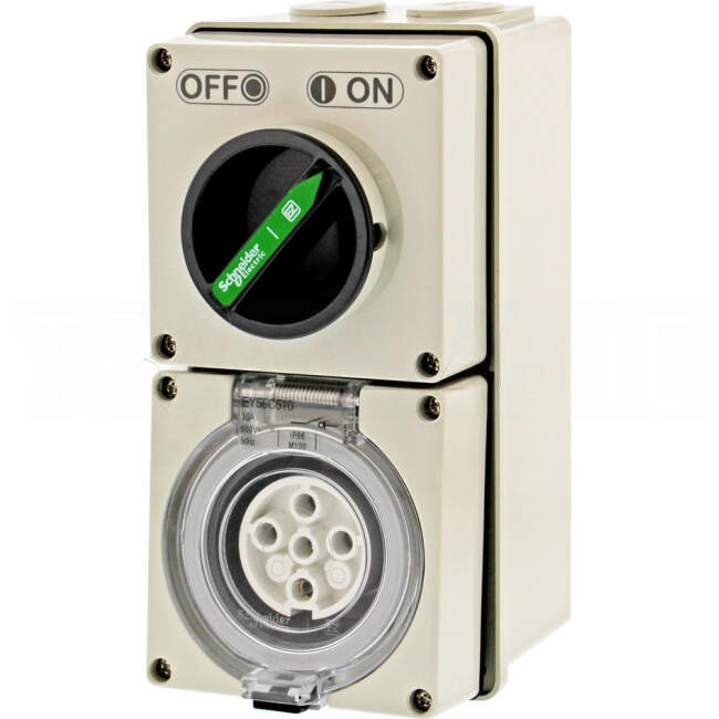 Clipsal 10 Amp EASY56 3 Phase 5 Round Pins Industrial Switched Outlet Grey