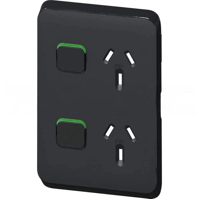 Clipsal 10 Amp ICONIC Double Vertical Internal Powerpoint Cover Plate Black