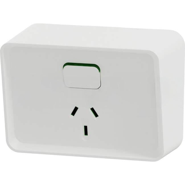 Clipsal 10 Amp ICONIC OUTDOOR Single Switched Weatherproof IP54 Powerpoint White