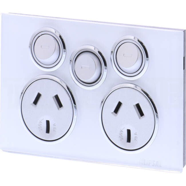 Clipsal 10 Amp SATURN Double Internal Powerpoint With Extra Switch Pure White