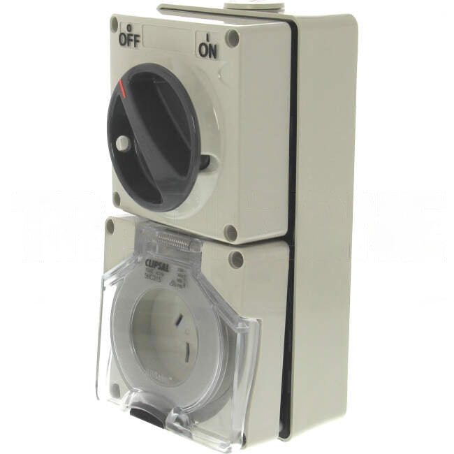 Clipsal 15 Amp 56 SERIES Single Phase 3 Flat Pins IP66 Industrial Switched Outlet Grey