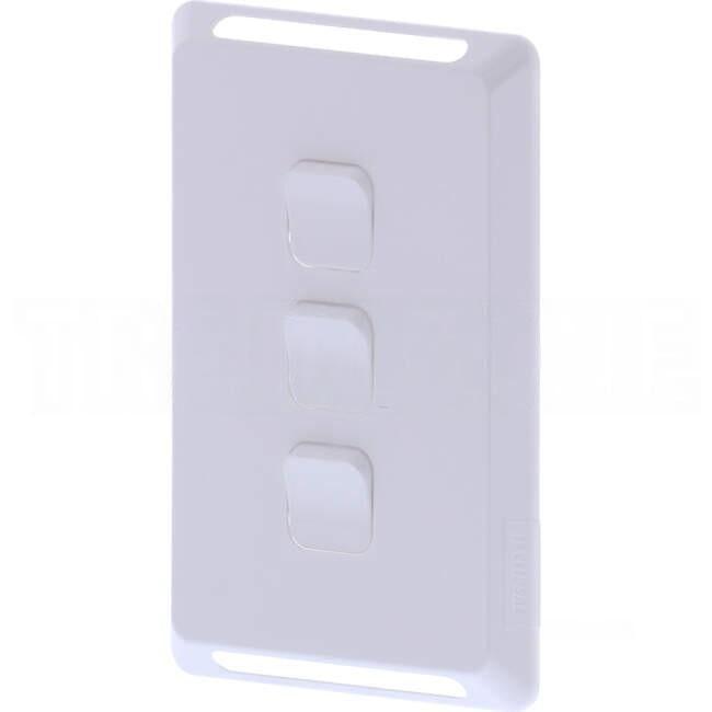 Clipsal 3 Gang PRO Series Vertical Internal Rocker Switch Cover Plate White