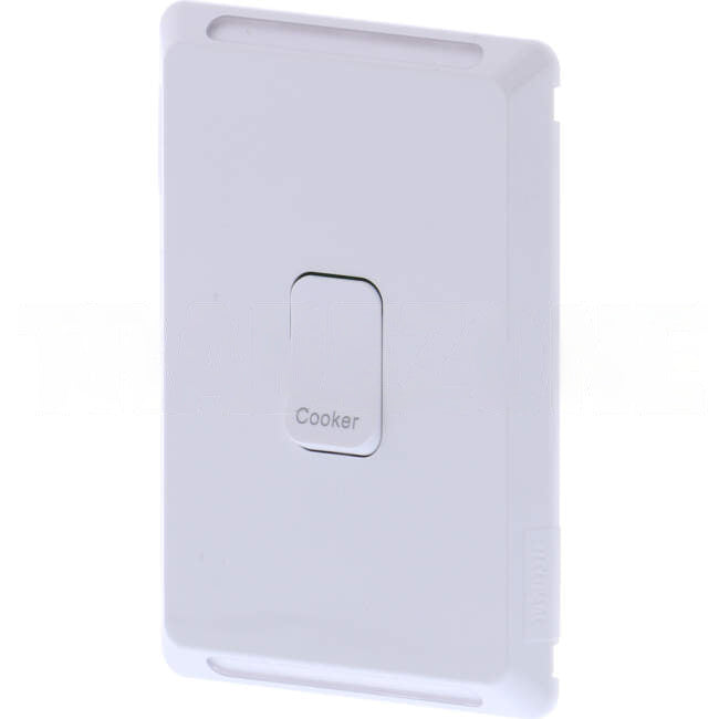 Clipsal 45 Amp 1 Gang PRO Series Vertical Internal Cooker Isolation Rocker Switch White