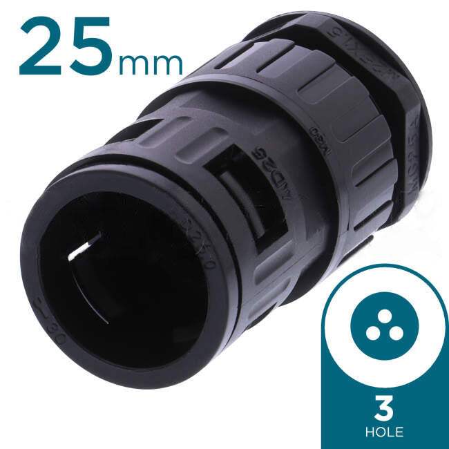 Cobalt Solar Energy 25mm Solar Corrugated Nylon Gland With 3 Hole x 5.5mm Each
