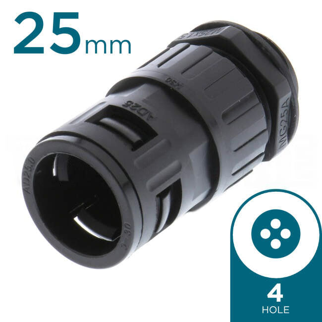 Cobalt Solar Energy 25mm Solar Corrugated Nylon Gland With 4 Hole x 5mm Each