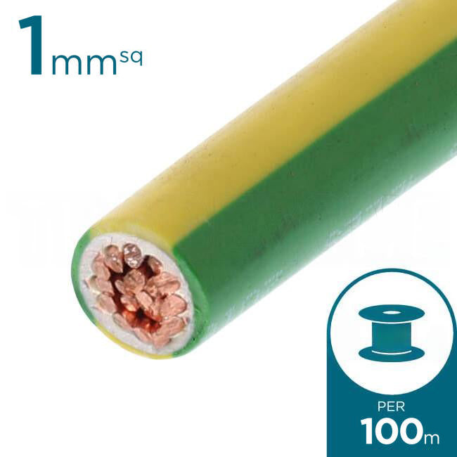 Electra 1mm Single Core Flexible Cable V90HT Green/Yellow 100 Metre Roll