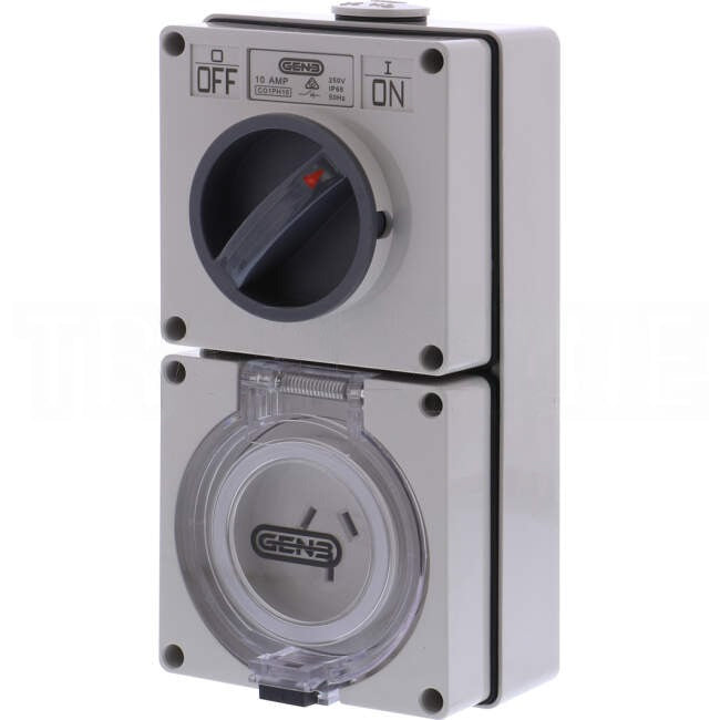 GEN3 10 Amp Single Phase 3 Flat Pins Industrial Switched Outlet Grey