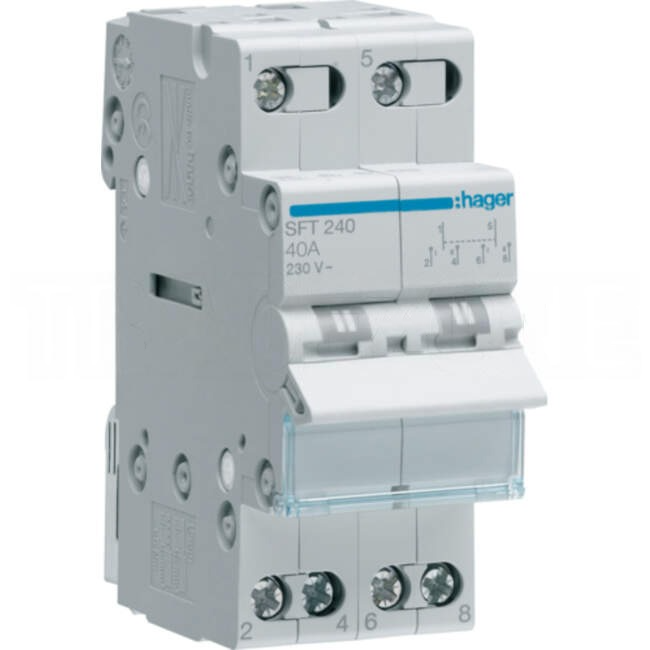 Hager 40 Amp 2 Pole Centre Off Modular Changeover Switch With Top Common Point Grey