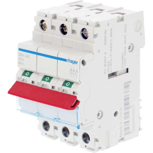 Hager 40 Amp 3 Pole Main Switch With Red Toggle