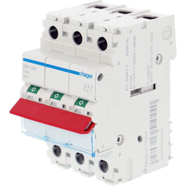 Hager 80 Amp 3 Pole Main Switch With Red Toggle