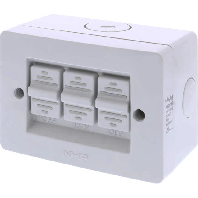 NHP 16 Amp 3 Gang N-LINE Large Weatherproof Switch Grey
