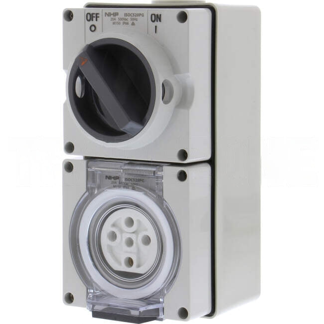 NHP 20 Amp 3 Phase 5 Round Pins Industrial Switched Outlet Grey