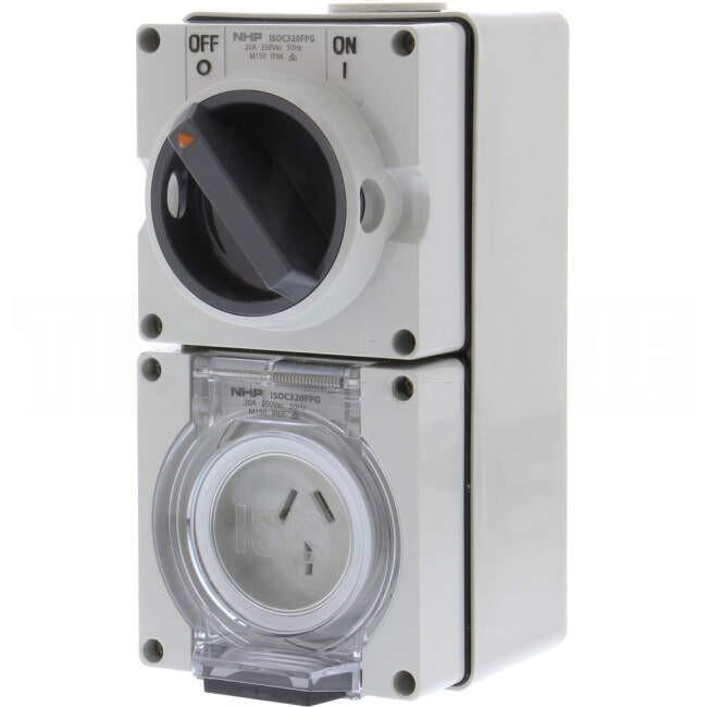 NHP 20 Amp Single Phase 3 Flat Pins Industrial Switched Outlet Grey