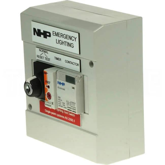 NHP Concept Emergency Lighting Test switch kit denys quick and easy method to semi automate discharge testing of single point emergency lighting fittings in accordance with AS/ NZS2293.1 and AS/NZS 2293.2 Emergency evacuation lighting for buildings.