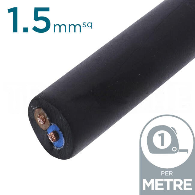 Power Flex Cables Cables 1.5mm 2 Core H07 Rubber Insulated Cable Black Per Metre
