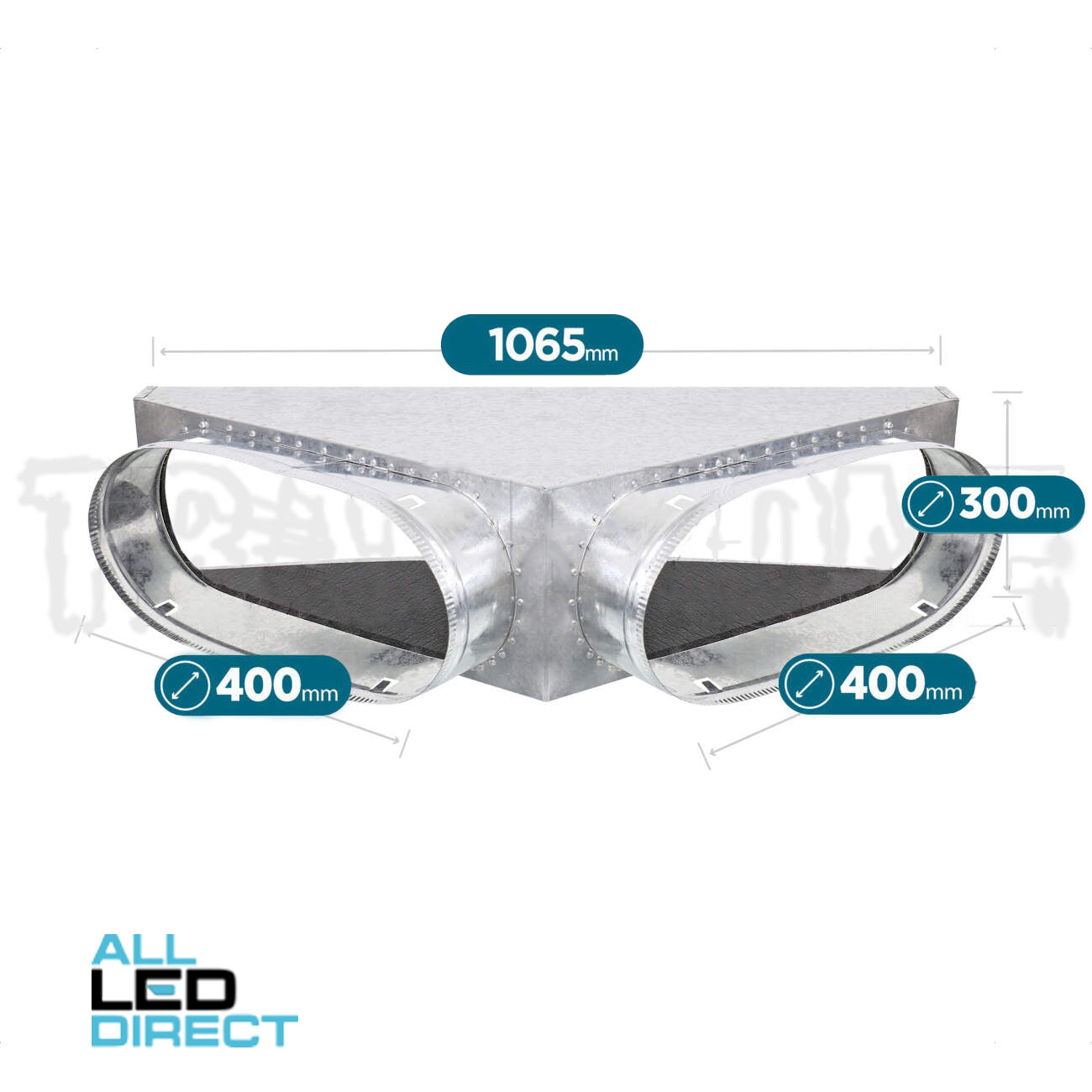 Powerwave Air 1065mm x 300mm Supply Air V-Box Plenum with 2 x 400mm Spigot Suitable for Mitsubishi Models FDUA140VNXWVH & FDUA160VNXWVH