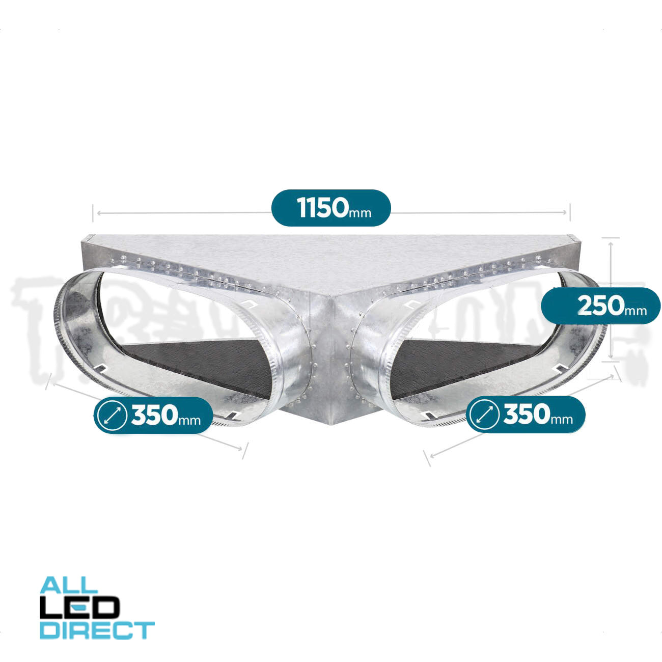 Upgrade your air conditioning system with the Powerwave Air 1150mm x 250mm Supply Air V-Box Plenum with 2 x 350mm Spigot Suitable for Daikin Models FDYAN125/140/160 & Samsung Models ACT100/120/140/160.