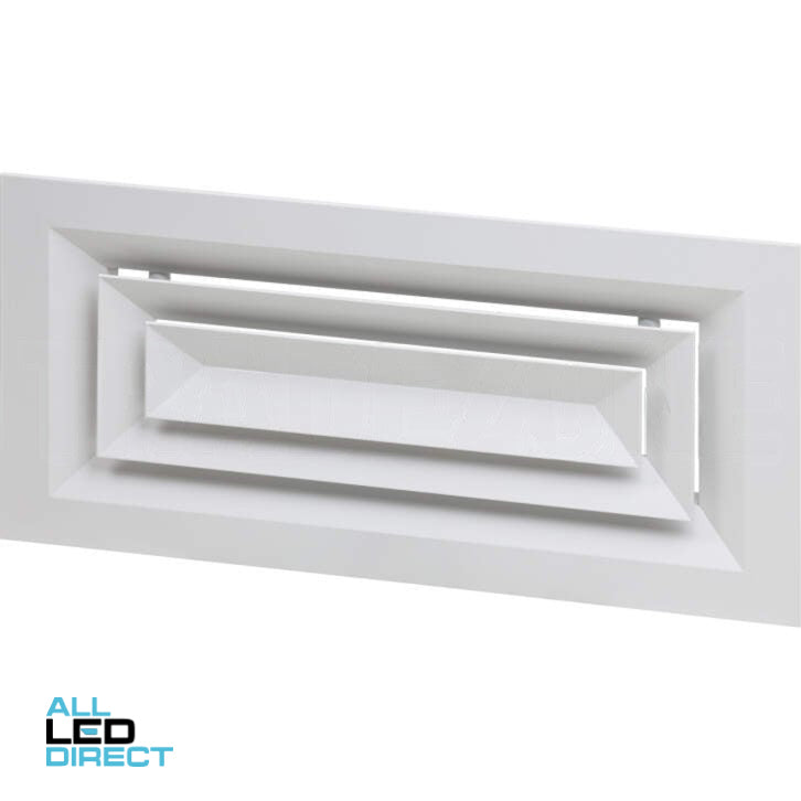 Louvre Face Diffuser is generally flush mounted to the ceiling line, and it is ideal for lay-in applications where the diffuser is placed into a T-bar ceiling grid. The Louvre Face Diffuser can be used in place of a modular ceiling tile without altering the T-bar construction. It comes in standard white. It is easy for installation with its removable core or OBD if needed. Also it provides options for 1,2 & 3 way air flow patterns.