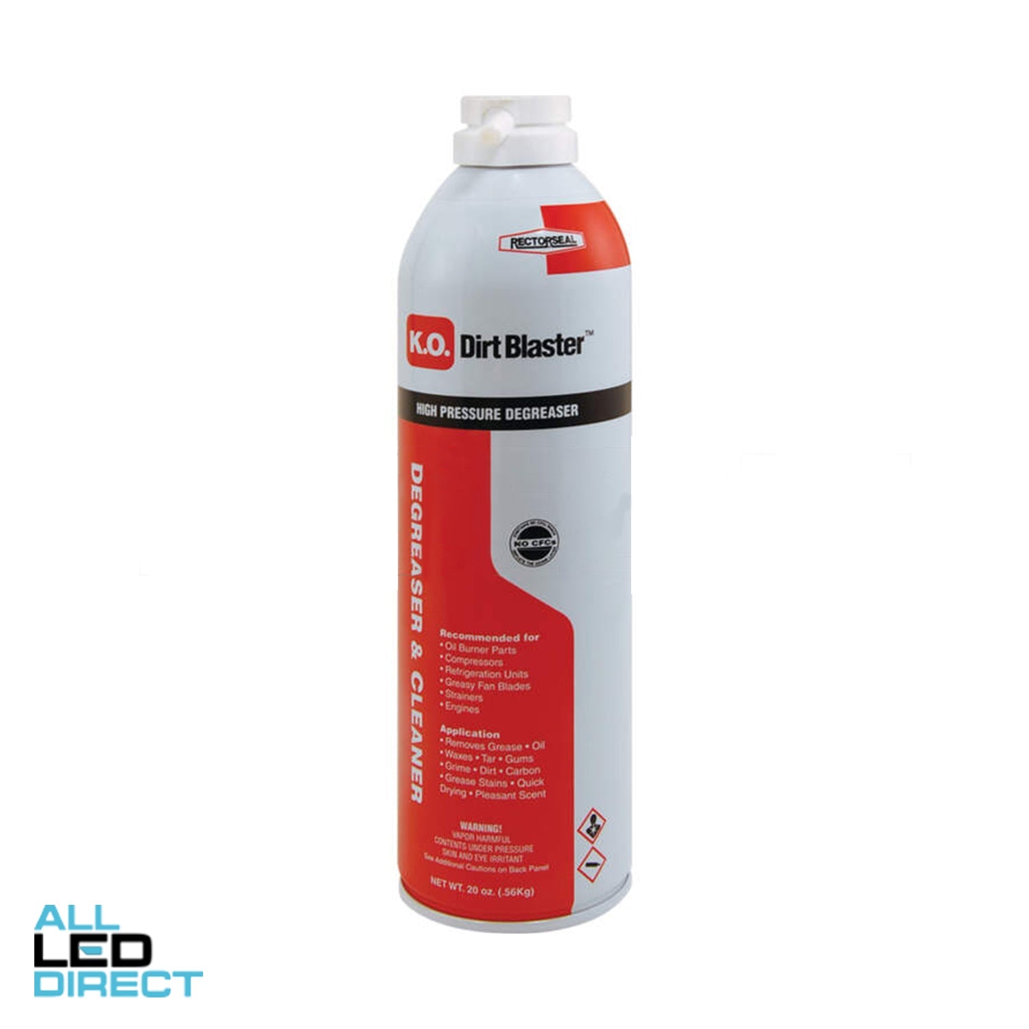 K.O. Dirt Blaster is a high pressure cleaner and degreaser for small condenser coils found in restaurant and food service refrigeration, air conditioners, electrical and mechanical equipment. Strips off dirt and cooking grease without a water rinse. Quick drying safety solvent with pleasant scent. High dielectric strength. Non-Flammable. Application K.O. Dirt Blaster quickly dissolves grease and oil on refrigeration coils, oil burner surfaces and other machine parts. K.O. Dirt Blaster is non conductive, so it will not short out electrical equipment such as switches, relays, circuit breakers, motors and electrical components. It is particularly effective on restaurant grease and other greasy surfaces Features Dissolves grease quickly Pressure washes small condenser coils without a water rinse Quick Drying/ Pleasant citrus scent Non-flammable Safety Degreaser Solvent No CFCs.