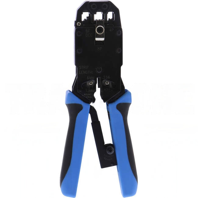This high quality Professional Multi Modular Ratcheted Crimping Tool is designed to quickly crimp different types of connector in one easy simple operation! The ratcheted parallel action crimping motion ensures a uniform crimp every cycle. Features precision cast crimping dies for superior accuracy. Built in wire cutter and stripper for silver satin. All steel frame with rust resistant black oxide finish.
