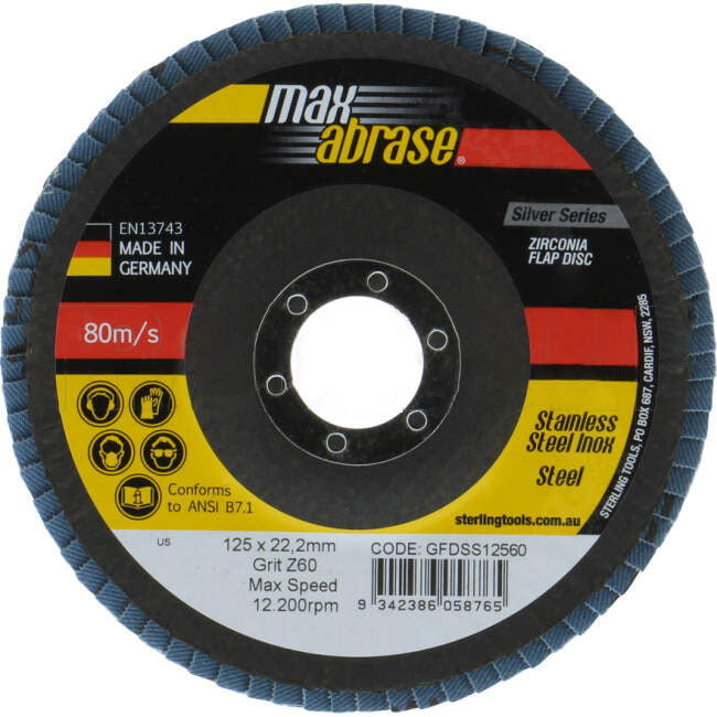 - MaxAbrase Flap Discs are premium quality discs made in Germany using quality Zirconia abrasive material, to produce the ultimate performer in mild steel and stainless steel grinding and finishing applications