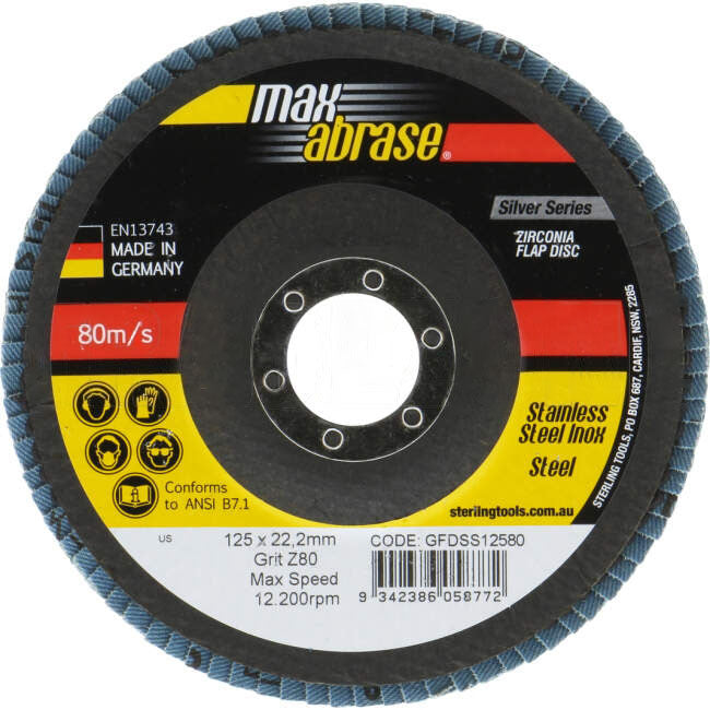 - MaxAbrase Flap Discs are premium quality discs made in Germany using quality Zirconia abrasive material, to produce the ultimate performer in mild steel and stainless steel grinding and finishing applications