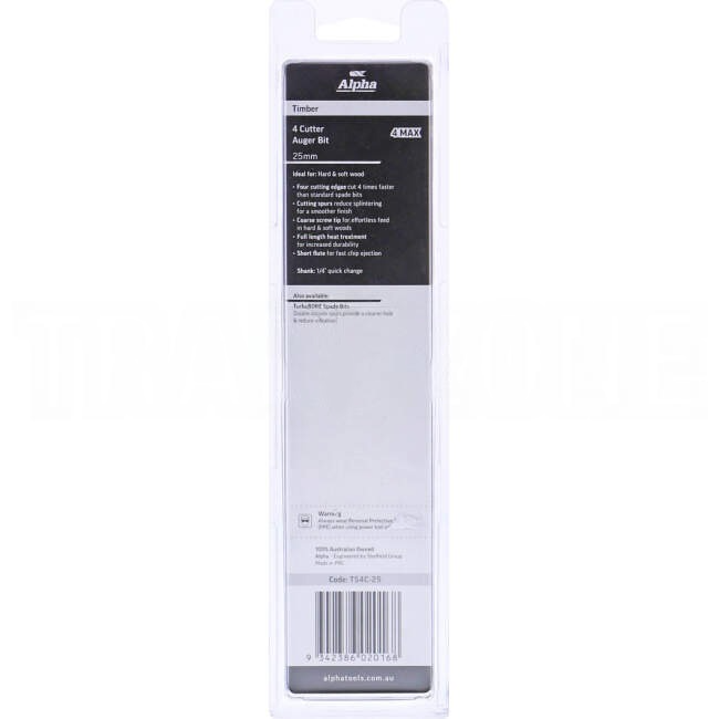 4 cutter auger bit with screw tip for effortless feed and spurs for cleaner faster cutting