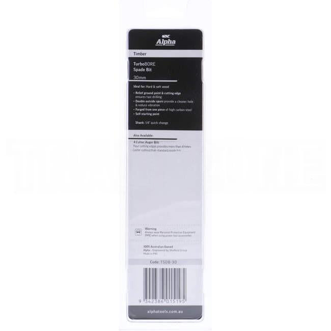 Sheffield 30mm Alpha Spade Bit - TurboBORE