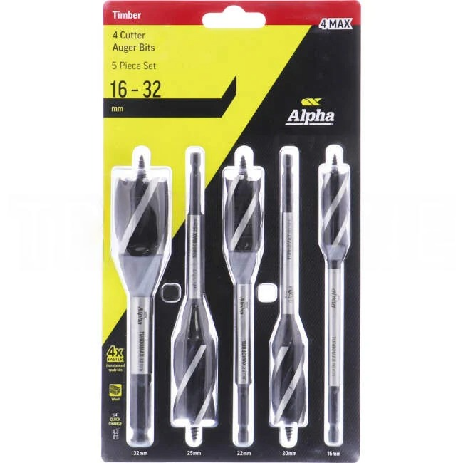 - 4 cutter auger bit with screw tip for effortless feed and spurs for cleaner faster cutting