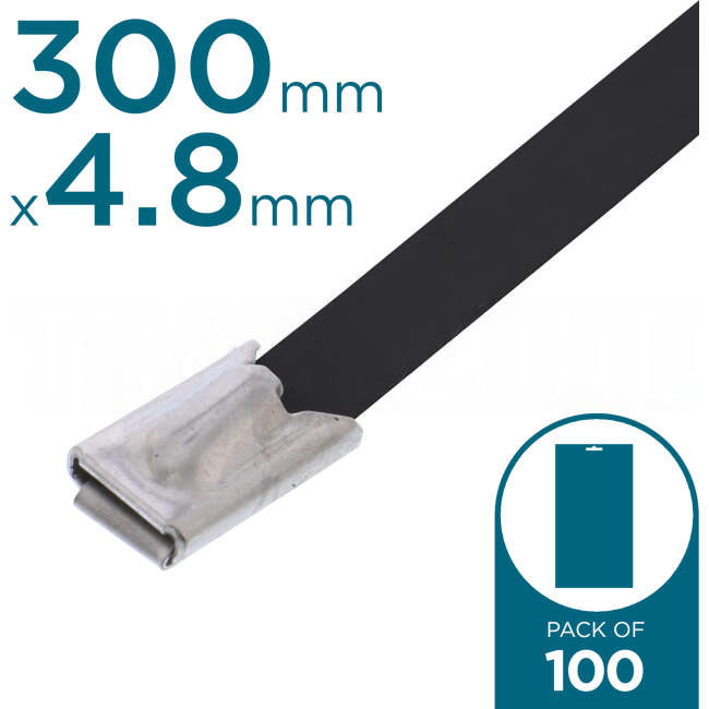 Stainless Steel 300mm x 4.6mm Coated Cable Ties Pack Of 100