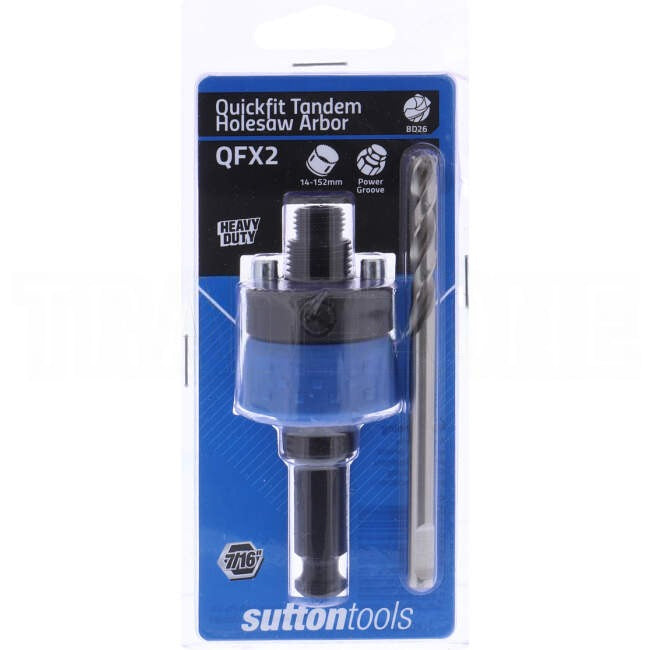 Heavy duty arbor with spring clutch drive pins to assist in quick location and fitment for a wide range of Sutton Tools holesaw and extensions